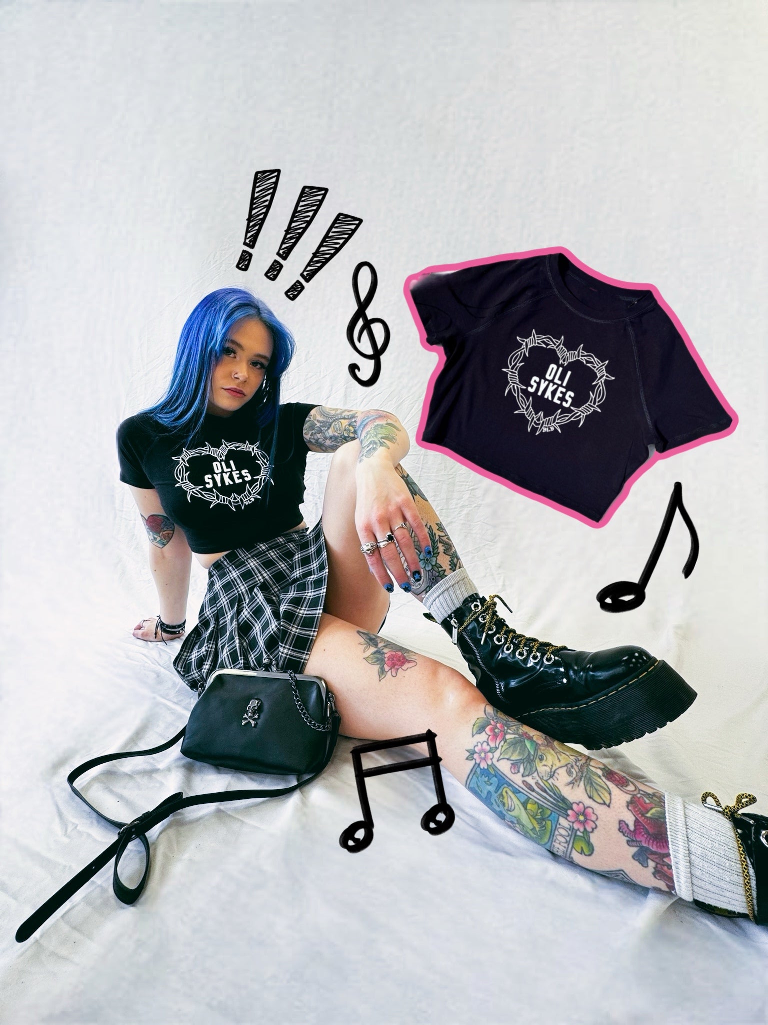 the 'barbed wire ' crop from the new collection - customise the name within the heart! let me know in the order note what you want it to say 🖤💫