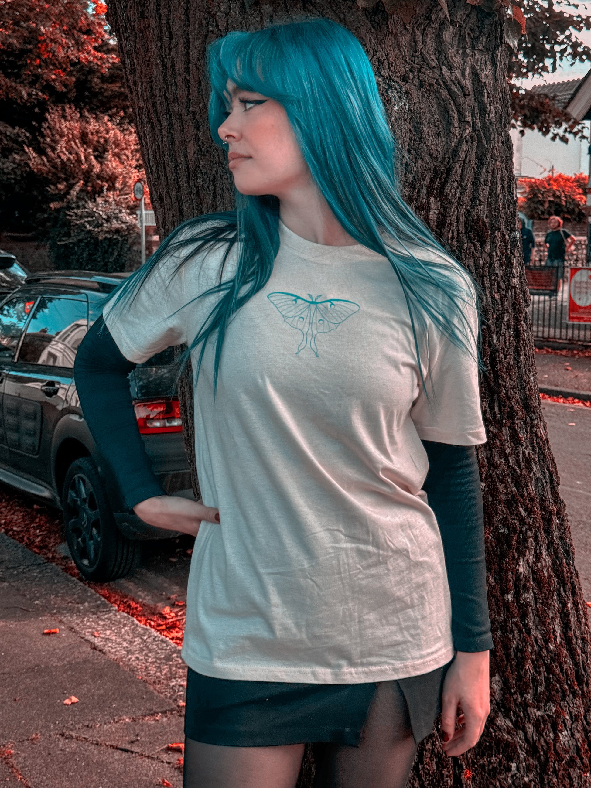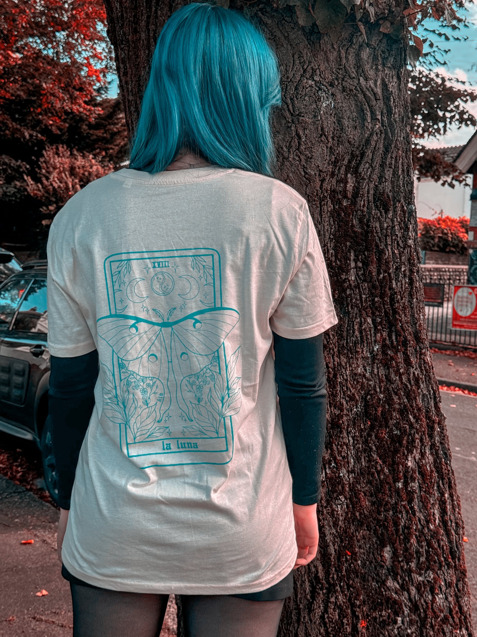 part of the new spooky szn vol.5 the 'la luna' tee with front and back graphic