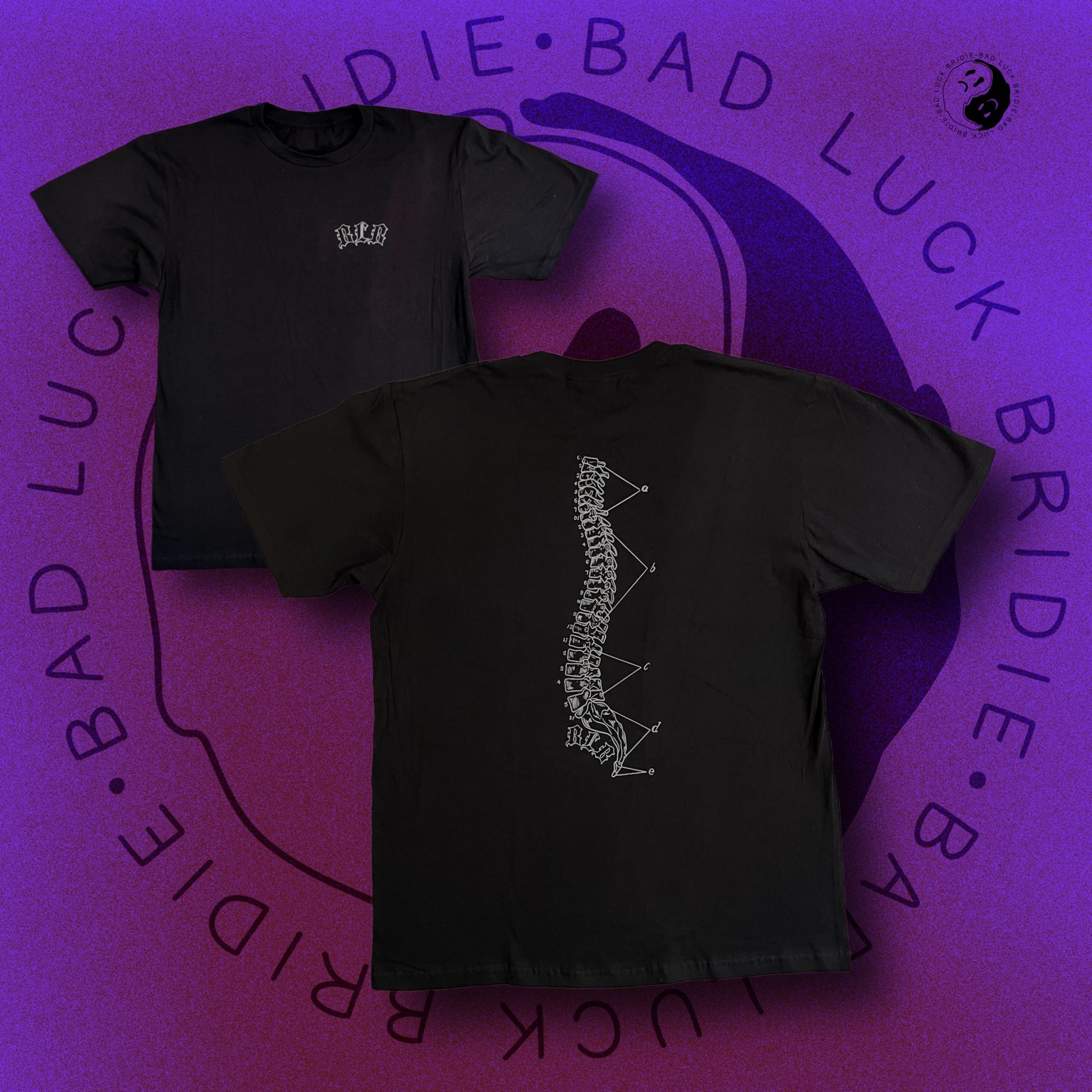 front & back print featuring 'BLB' logo on front and spinal cord on the back