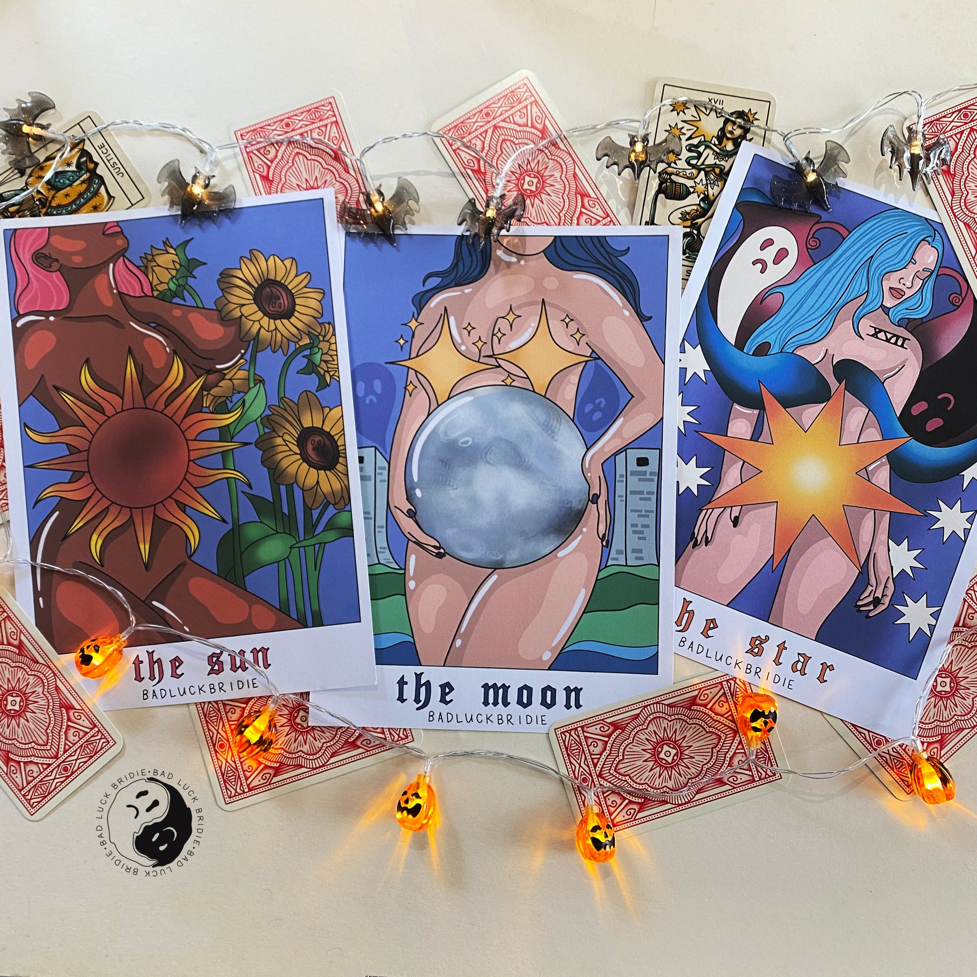 The sun, The Moon & The Star is printed in full colour on A4 220gsm making them a super smooth durable print, part of the new spooky season vol.3 collection!